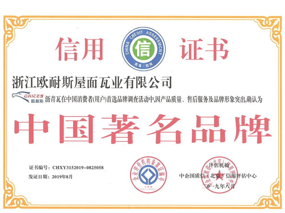 浙江歐耐斯屋面瓦業有限公司成立于1999年是一家集研發、生產、銷售和服務為一體的高新技術企業。公司憑借全國標品質的產品,銷售跟蹤式服務,在瀝青瓦行業內崛起。全公司現有員工60多人,銷售服務網絡覆蓋國內外150多個城市,年產量500萬平方。歐耐斯瓦業自成立以來,依托完善的法人治理結構,堅持技術創新、市場創新和管理創新之路,實現公司品牌化發展之路。